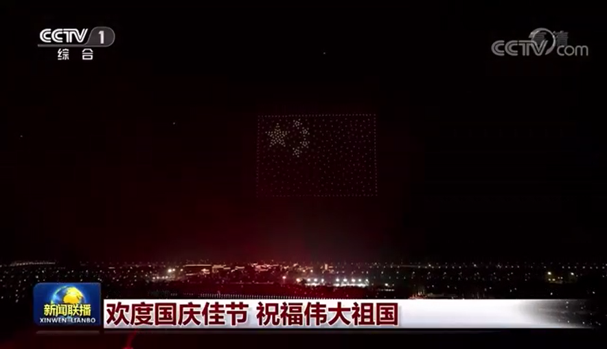 在江苏盐城,由500架无人机组成的“迎国庆天幕秀”吸引了众多市民。