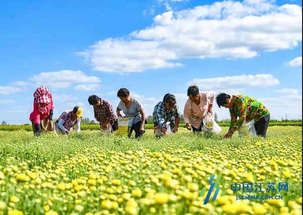 中国江苏网10月11日盐城讯 金菊镶绿野,碧水映蓝天。秋天的洋马婀娜多姿,水清河净、菊香扑鼻、绿色和谐的壮美生态画卷在102平方公里的大地上徐徐展开。农业强、农村美、农民富的华丽蜕变,正是“中国药材之乡”——盐城市射阳县洋马镇坚持绿色低碳发展的生动写照。