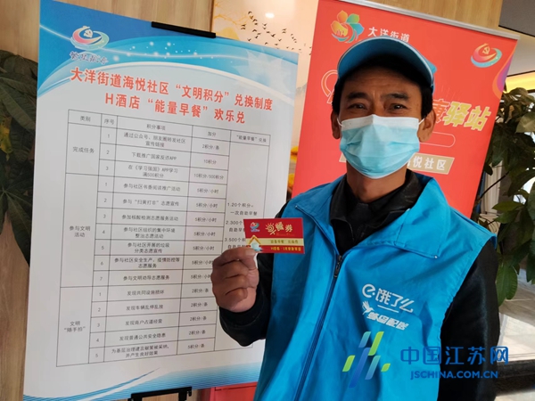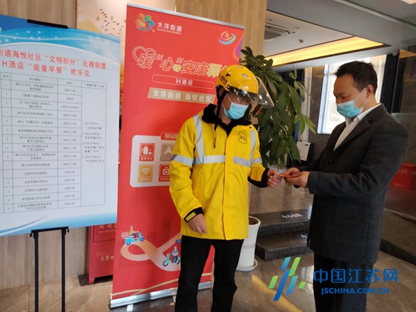 中国江苏网10月27日盐城讯 为激励辖区外卖、快递、网约车司机等从业人员讲奉献有作为,近日,盐城市亭湖区大洋街道海悦社区新时代文明实践站携手辖区H酒店正式推出“文明积分”兑换“能量早餐”活动。