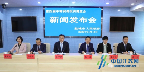 11月14日上午,盐城市政府召开新闻发布会,介绍第四届中韩贸易投资博览会筹备情况。