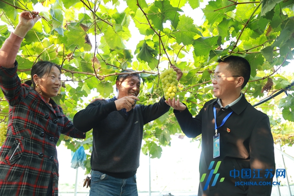 张庄街道纪委始终站稳人民立场,在乡村振兴中督促基层党员干部落实责任、主动作为、真情服务,出实招、出硬招,让群众尽享安居乐业美好生活。街道纪委纪检监察干部深入张庄葡萄园,向喜获丰收的群众了解涉农政策落实情况。