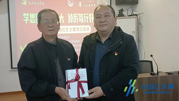中国江苏网11月22日盐城讯 11月21日,东台市东台镇金墩社区开展主题党日活动,通过赠书、讲座等形式,引导党员干部读原著、学原文、悟原理,深入学习宣传贯彻党的二十大精神。