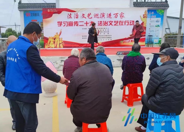 文艺活动以一个个具体的典型事例,向群众诠释了法律法规的重要性,淮剧和淮歌节目则是用群众最熟悉的方式展示了法治建设新举措新作为。演出中还穿插了观众答题环节,现场气氛十分热烈。村民们纷纷表示,在演出和互动中,一下子就记住了很多法律知识。在演出期间,网格员在现场发放法治宣传资料,并为村民解答他们关心的法律法规等相关问题。