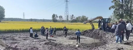 10月22日,冈西镇在复垦整地时,施工挖机挖出大量宋代铜钱,随即进行现场保护与抢救性发掘。10月24日,双墩村窖藏现场考古工作者们在挖土清理过程中,遗迹全貌逐步露出。