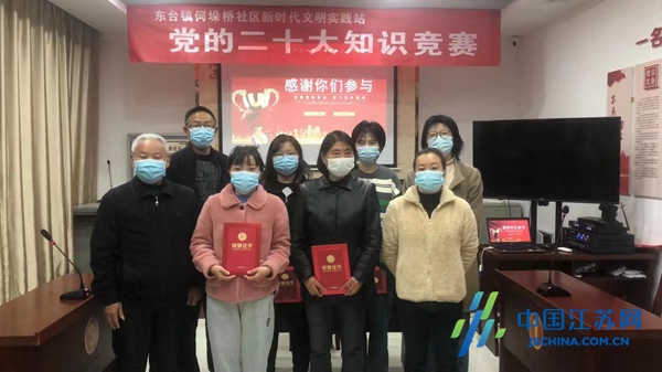 中国江苏网11月30日盐城讯 日前,东台市东台镇何垛桥社区新时代文明实践站举办了主题为“以史为鉴开创未来 埋头苦干勇毅前行”的学习贯彻党的二十大精神知识竞赛,活动邀请了辖区居民代表、党员代表、社区工作者组成四支队伍参赛。
