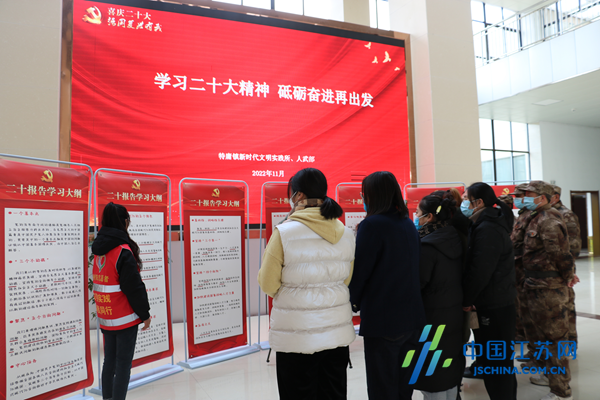 “党用伟大奋斗创造了百年伟业,也一定能用新的伟大奋斗创造新的伟业。”……在镇“百姓名嘴”、理论宣讲志愿者沈亚兰的讲解下,大家认真观看党的二十大精神宣传展板,引起现场人员的强烈反响。“作为宣传工作者,我们要学习宣传好党的二十大精神,讲好红色故事,坚定不移听党话、感党恩、跟党走。”红旗社区宣传文化管理员孙维佳表示。