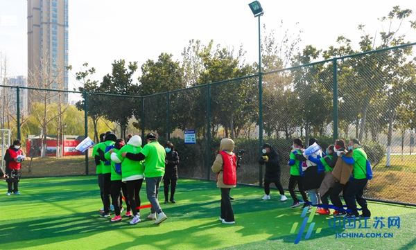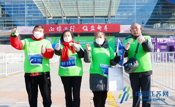 在燕舞国际汽车城的起点,跑友们身穿绿色队伍运动服在热身、打卡。“平时就很喜欢运动,这次和跑友们一起来参加,虽然天气很冷,但在这么有魅力的城市下跑步还是挺幸福的。”盐城市民邵安东已经是第四次参加城市定向赛了。