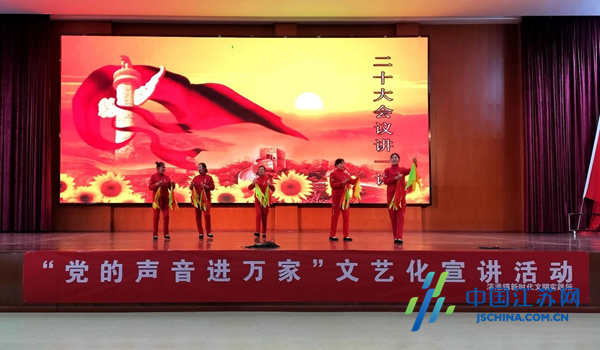 中国江苏网1月16日盐城讯 为丰富广大人民群众精神文化生活,彰显文化自信,更好地推进理论惠民工作,进一步扩大冬训的影响力、感染力,近日,由盐城市滨海县滨淮镇新时代文明实践所主办的“党的声音进万家”系列文艺化宣讲活动在滨淮镇新时代文明实践所拉开序幕。来自江苏省优秀群众文化团队——滨淮镇新韵文化艺术团的22名文艺志愿者们结合党的二十大精神,精心编排创作了歌曲、舞蹈、小品、朗诵等12个节目,为全镇广大群众送上了一场精彩的文艺盛宴。