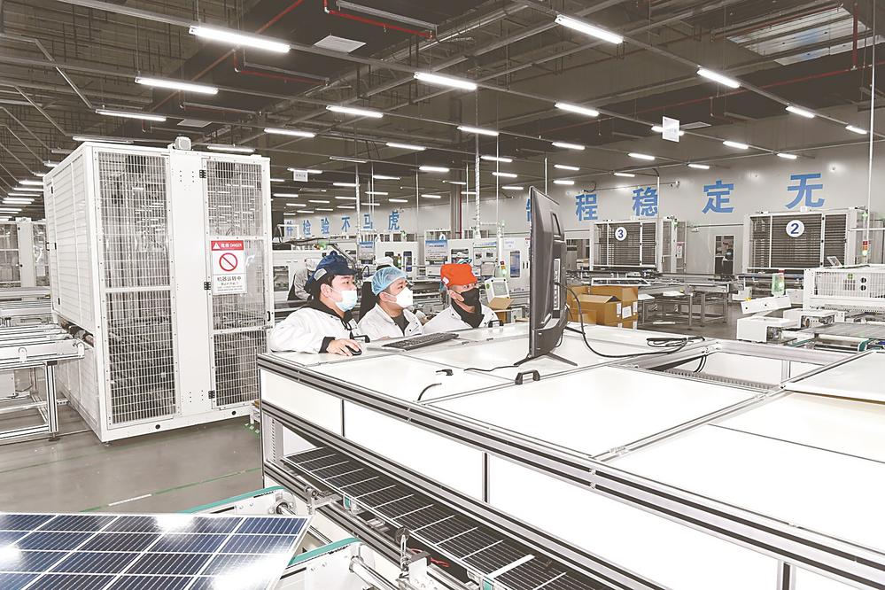 天合光能11GW组件项目生产车间一片忙碌景象