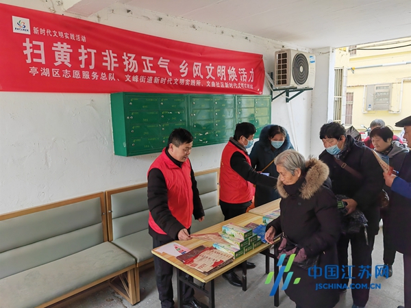 中国江苏网2月10日盐城讯 为进一步净化社区文化环境、进一步夯实“扫黄打非”的社会影响,教育和引导广大青少年和辖区群众自觉抵制有害出版物,树立积极健康向上的社会风尚。2月9日上午,盐城市亭湖区文峰街道文曲社区党委联合区志愿服务总队、文峰街道新时代文明实践所、文曲社区新时代文明实践站等部门单位开展“扫黄打非扬正气 乡风文明焕活力”护苗活动。