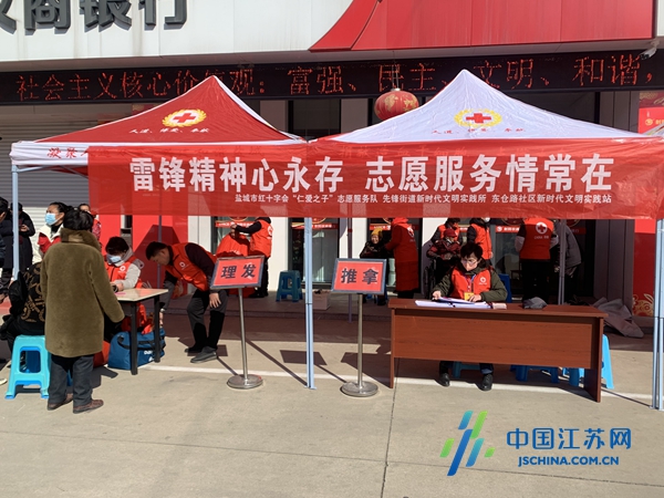 中国江苏网3月2日盐城讯 在“学雷锋纪念日”到来之际,为大力弘扬雷锋精神,盐城市亭湖区先锋街道新时代文明实践所、东仓路社区新时代文明实践站联合盐城市红十字会“仁爱之子”志愿服务队共同开展主题为“雷锋精神心永存志愿服务情常在”学雷锋志愿服务月活动,为辖区居民免费理发、推拿、测血压。
