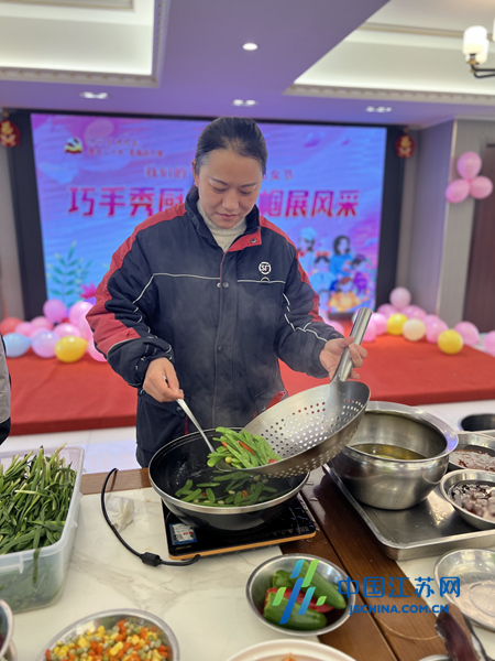 中国江苏网3月4日盐城讯 阳春三月,芳华绽放。为全面贯彻落实党的二十大精神,庆祝第113个“三八”国际妇女节,展示新时代妇女风采,丰富党员群众的业余文化生活,3月3日上午,盐南高新区新河街道聚亨社区组织开展“巧手秀厨艺 巾帼展风采——我为家人做道菜”活动,并邀请了辖区新业态新就业女性群体参与。
