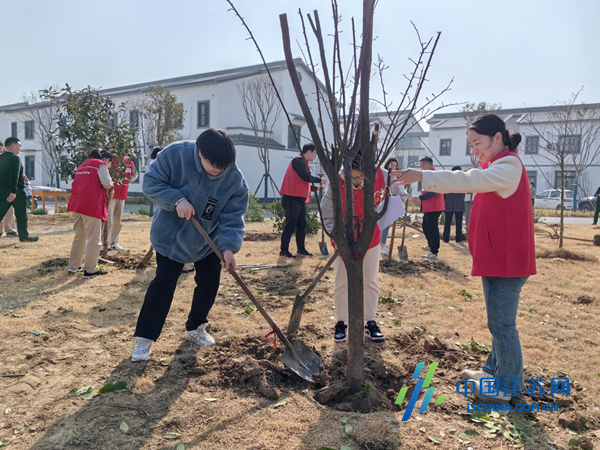 中国江苏网3月14日盐城讯 清风拂柳催新芽,植树增绿正当时。3月10日上午,盐城市射阳县海河镇联合射阳县供电公司,组织“青蓝工程”和“托举工程”的青年同志开展“植树节”廉政共建活动,让青年同志在“吹吹风”“醒醒脑”“润润心”中,植廉于心,尚廉于行。