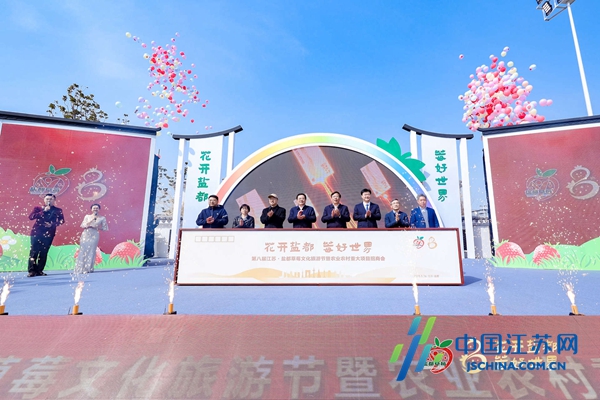 中国江苏网3月26日盐城讯(记者 程光 通讯员 黄艳)阳春三月,莓果飘香。今天上午,第八届江苏(盐都)草莓文化旅游节暨“花开盐都 莓好世界”农业农村重大项目招商活动,在盐都现代农业产业示范园内拉开大幕。来自全国各地的业界专家欢聚一堂,以“莓”为媒,共话发展。本次活动由盐都区人民政府、盐城市农业农村局主办,盐都区农业农村局、盐都区文化广电和旅游局、盐都区潘黄街道办事处、江苏鲜之都现代农业集团有限公司承办。