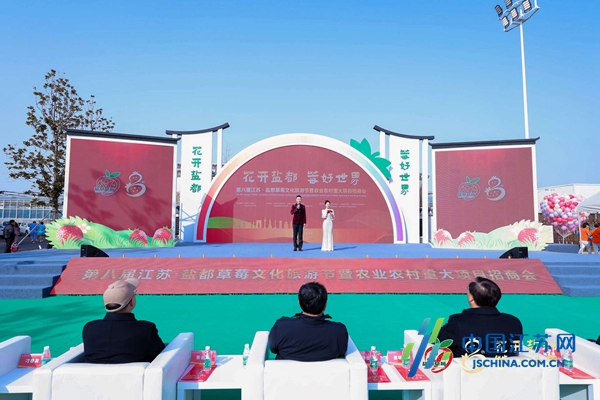 当天,盐都区还举办了农业农村重大项目招商推介活动,邀请全国各地客商参会,以会为媒,推介盐都招商环境和政策,集中签约一批项目,建立“花开盐都 莓好世界”农业招商推介常态化机制。(供图:盐都区委宣传部)