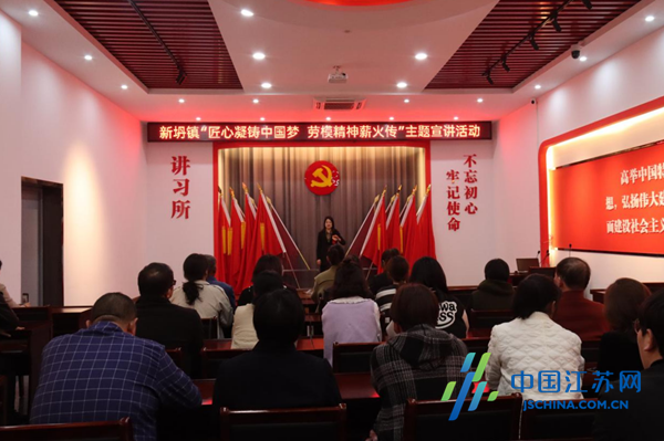 中国江苏网4月29日盐城讯 为深入学习贯彻党的二十大精神,大力弘扬劳模精神,在“五一”国际劳动节来临之际,4月28日上午,盐城市射阳县新坍镇新时代文明实践所在新潮红色文化传承馆开展了“匠心凝铸中国梦 劳模精神薪火传”主题宣讲活动,机关党员干部代表、各村(社区)宣传文化管理员、居民群众等50多人参加了活动。