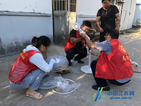 同时,射阳经开区新时代文明实践所组织各村(社区)志愿者们上门为退伍老兵开展“夏日送清凉”活动,将米、面、食用油、电风扇等慰问物资送到老兵手中。每到一户,志愿者们都与老兵及其家人亲切交谈,了解他们的身体和家庭生活情况,认真梳理退役军人在住房、医疗、就业、生活等方面的问题,积极制定行之有效的针对性帮扶措施。