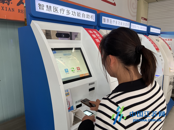 中国江苏网6月28日盐城讯 6月21日上午,在滨海县人民医院门诊大厅,门诊收费处主任杨映涛现场指导患者在门诊自助服务机上使用数字人民币支付。“患者在自助服务机上可选择数字人民币支付方式,只需使用数字人民币APP的扫一扫功能,即可通过数字人民币钱包完成缴费。”