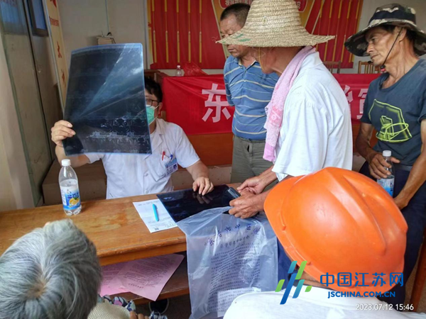 这是由东台市开展的“千医巡诊万村行”活动中的一个画面。此次活动由东台市卫健委牵头组织,南沈灶镇卫生院、东台市人民医院和中医院负责实施。来到南沈灶镇的7名医生涵盖了泌尿外科、消化内科、重症医学、血液、肿瘤等学科,每次下村由7名医生组成,从7月9日开始,到8月1日前实行全镇14个村全覆盖。