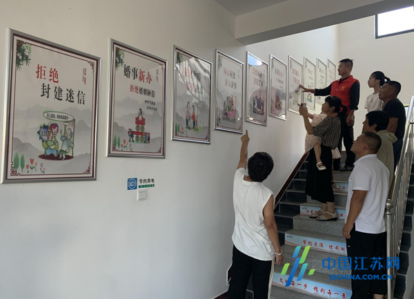 移风易俗“搬”上墙,文明新风润人心。在新庄村新时代文明实践站,楼道墙面和台阶上张贴了“婚事新办,拒绝婚姻陋俗”“家庭和睦,邻里融洽”“拒绝封建迷信”等移风易俗主题海报和文明创建标语。通俗易懂、生动形象的主题海报,时常吸引前来办事的群众驻足观看,受到了群众的喜爱。主题海报让过往群众在潜移默化中接受文明新风的教育和洗礼,更好地培育践行社会主义核心价值观,引导群众自觉抵制铺张浪费、高价彩礼、大操大办等陈规陋习,树立文明节约的时代新风,让群众进一步了解了移风易俗的意义。