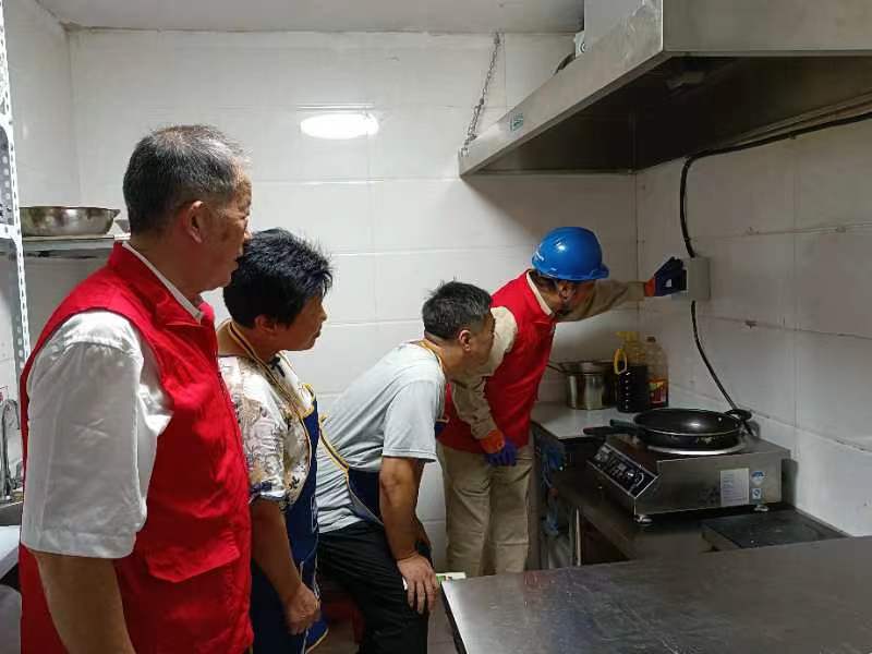 宣传活动结束后,离退休同志走进“广东汤粉”餐饮店,现场进行安全用电指导。“自从改了电磁炉后由于没有明火,后厨凉快多了,而且也不担心煤气泄漏了,真是卫生又安全。”店老板崔春祥并对离退休同志冒暑前来服务深表敬意。
