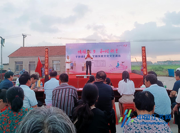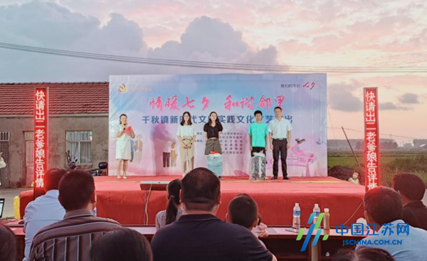 中国江苏网8月23日盐城讯 为进一步弘扬中华优秀传统文化,大力推进新时代精神文明建设,8月22日晚,由盐城市射阳县新时代文明实践中心、千秋镇新时代文明实践所主办,千秋综合文化站、滨兴村村民委员会、滨兴村乡贤理事会、滨兴村新时代文明实践站承办的“情暖七夕 和谐邻里”主题文艺晚会在千秋镇滨兴村举行。