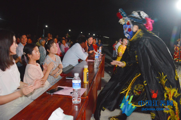 随后,文艺晚会在开场歌舞《歌颂祖国》中拉开序幕,淮剧选段《书房会》、情景剧《不忘阶级苦》、川剧《变脸》、群口快板《中国式现代化》、歌曲《玛尼情歌》等十多个精彩节目轮番上演。整场演出充满了和谐、温馨、热烈、欢乐的气氛,赢得了在场观众阵阵喝彩。演出同时,还穿插了有奖问答环节,将文明城市创建、全民阅读、移风易俗、反诈骗、燃气安全等知识以寓教于乐的形式传递给村民。