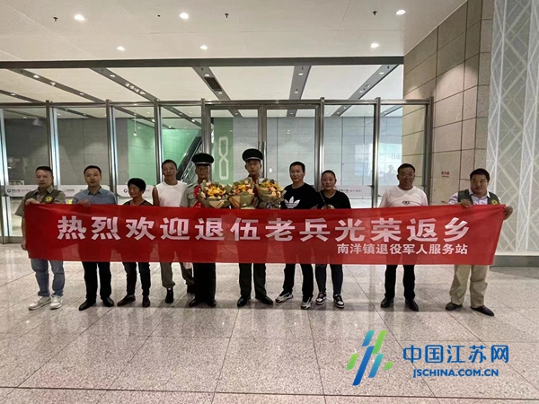 中国江苏网9月5日盐城讯 昨日建功军营,今朝荣归故里。9月1日,盐城市亭湖区南洋镇退役军人事务局、退役军人服务站的工作人员和退役老兵家属一起,在盐城站出站口迎接老兵返乡。