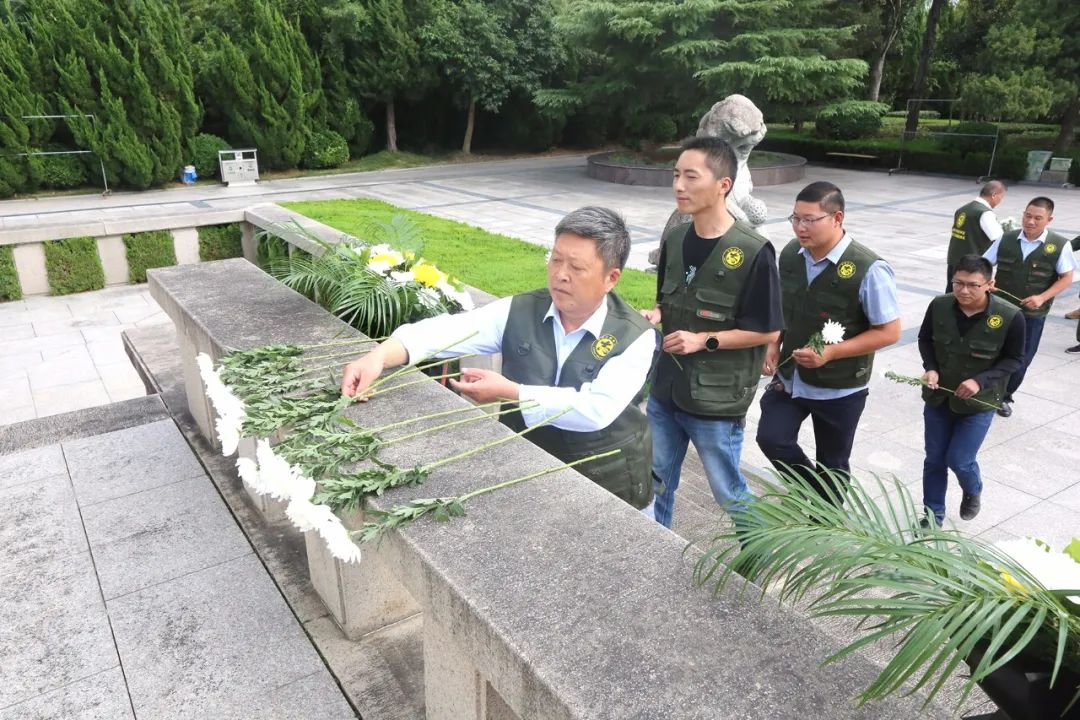 鲜花和松柏簇拥的革命烈士公墓,分外庄严肃穆,伫立其中的革命烈士纪念碑巍峨高耸,碑上“永垂不朽”四个大字遒劲有力。下午2点,敬献花篮活动正式开始,大家怀着无比崇敬的心情面向革命烈士纪念碑列队静默肃立,向为中国人民解放事业和共和国建设事业英勇牺牲的烈士们默哀。