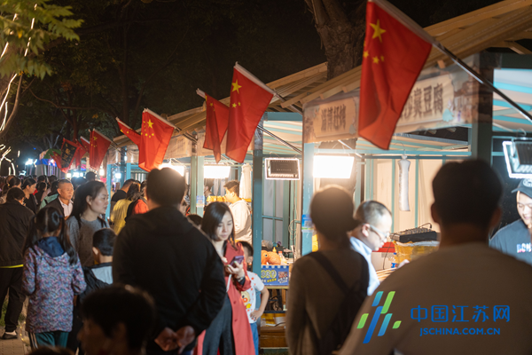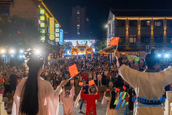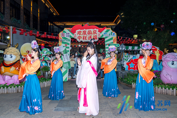 中国江苏网10月7日盐城讯 为庆祝“双节”,9月29日-10月8日,盐城盐镇水街举行了以“梦华宋韵”为主题的第九届金秋庙会活动。为游客们带来了一系列趣味横生、兼具新潮与传统的演出活动与趣味互动项目。美食市集、光影彩灯、特色演艺、古雅趣玩等各项活动层出不穷,为市民假期生活持续升温。