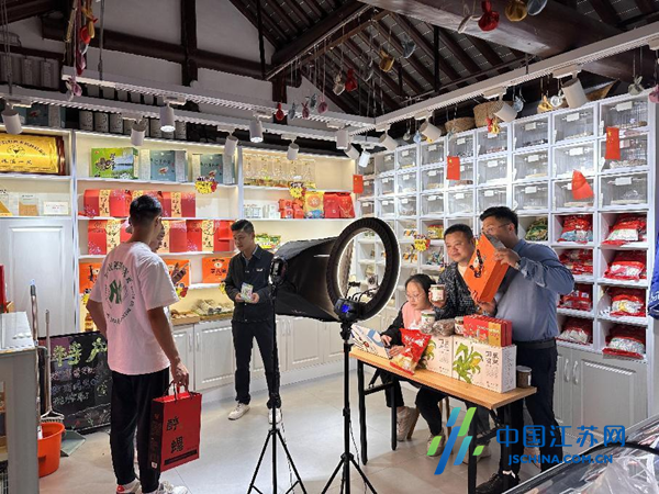 中国江苏网11月3日盐城讯 “大家好,珠溪古镇已有千年文化历史,伍佑糖麻花、醉螺被列为非物质文化遗产……”日前,盐南高新区伍佑街道福兴村“艺韵福兴”助农直播团队来到珠溪古镇进行助农带货直播,借助网络拓宽农产品销售途径,开启“直播共富”模式,助力乡村振兴。