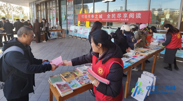 中国江苏网11月9日盐城讯 为进一步丰富辖区居民的精神文化生活,引导居民群众养成崇尚读书、自觉阅读的良好习惯,营造出“爱读书、读好书、善读书”的浓厚氛围,11月7日下午,射阳经济开发区新时代文明实践所在射阳吾悦广场举办了“打造书香之城,全民尽享阅读”主题活动。