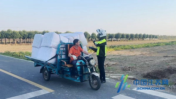 中国江苏网11月15日盐城讯 当前正值秋收旺季,农村道路上秋收机械车辆、电动车、三轮车、摩托车、农用车、货运车数量明显增加,交通压力也不断增大。为切实提升广大交通参与者的交通安全意识,东台市许河镇铁骑中队深入辖区主干道和各村大街小巷,开展“护航秋收”交通安全宣传活动,全力保障辖区村民秋收生产安全。