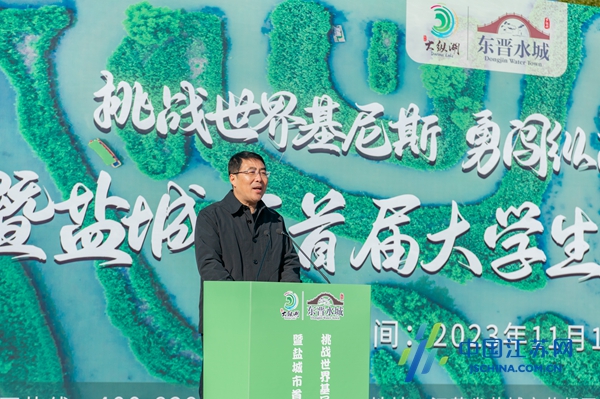 冯林宏在致辞中向出席启动仪式的各位领导、老师和参赛运动员、裁判员表示热烈欢迎,向关心支持本次赛事的盐都区委区政府、市体育局、盐城各大高校表示衷心感谢,并简要介绍了大纵湖景区的基本情况以及“纵湖秋色”“芦荡迷宫”等景观,勉励参赛大学生以体为媒、勇闯迷宫,在美丽的芦荡迷宫的竞技赛场上迸发青春与活力,安全参赛、文明参赛、规范参赛,努力拼搏,奋勇争先,赛出竞技水平、赛出道德风格、赛出团结友谊。他表示,大纵湖景区将以饱满的热情、细致的服务,精心做好赛事的各项保障工作,致力打造一场别样精彩、令人难忘的生态运动盛宴,让闯纵湖迷宫成为“乐在其中,美在心中”的一次运动盛会。