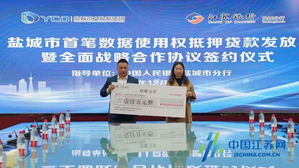 中国江苏网12月30日盐城讯 12月29日上午,盐城市大数据集团与江苏银行股份有限公司盐城分行举行盐城市首单支持数据资产业务发展专项贷款合作签约仪式。中国人民银行盐城市分行党委委员、副行长张伟,盐城市大数据集团党委书记、董事长朱亮亮,集团党委委员、总会计师翟洪文,盐南高新区财政局局长宋浩,江苏银行盐城分行党委书记、行长毛亮出席签约仪式。
