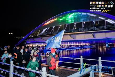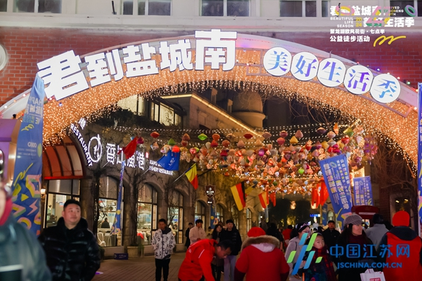 中国江苏网12月31日盐城讯 花火璀璨,新岁初展;美好常在,岁月如新。12月31日,盐南高新区“君到盐城南”品牌发布暨美好生活季——聚龙湖欧风花街·七点半公益徒步系列活动隆重举行。现场千余名市民游客用运动和公益告别2023,开启2024新征程。
