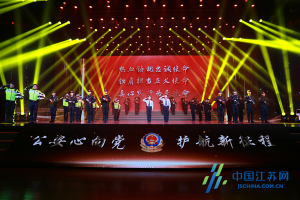 “为了人民幸福,为了复兴理想,风雨兼程,不可阻挡……”歌舞《领航》以旗叙志、以歌抒情、以舞传意,表达了盐城公安坚定不移跟党走的决心信念。