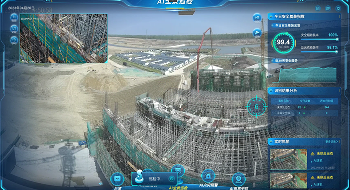 预警监测数字化。以人工监测为基础,搭设智慧安全平台,实现围堰、基坑、塔吊、临时用电、环境等数字化监控及高空AI智能巡检,做到重大危险源“自动化监测+人工监测”全覆盖、双保险,运用巡检app开展隐患人人查。