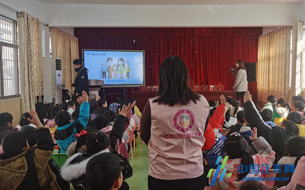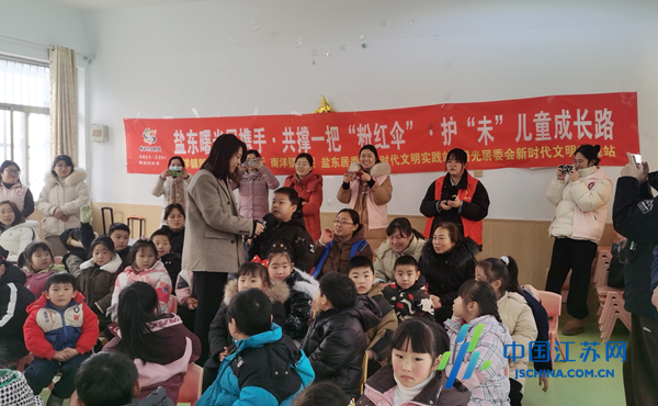 中国江苏网1月25日盐城讯 为了让儿童掌握一定的防拐安全技能,增加儿童对防拐知识的兴趣,提高自我保护能力,1月24 日下午,盐城市亭湖区南洋镇新时代文明实践所、南洋镇妇联联合南洋镇盐东居新时代文明实践站和曙光居新时代文明实践站,走进南洋中心幼儿园,开展“缤纷的冬日”系列活动之“盐东曙光同携手·共撑一把‘粉红伞’·护‘未’儿童成长路”防拐防骗专题教育活动。