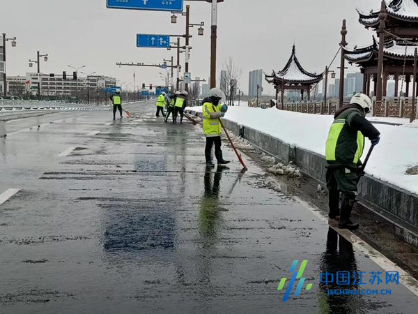 中国江苏网2月6日盐城讯 受强冷空气影响,盐城近期出现持续降雪,为保证辖区道路畅通,让居民有一个安全的出行环境,连日来,盐南高新区伍佑街道环卫所干字为先、迎雪而上,迅速启动防雪防冻预案,常态化开展扫雪除冰行动。