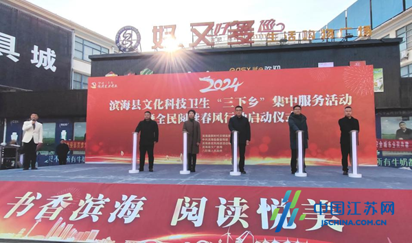 中国江苏网2月7日盐城讯 2月6日,2024年盐城市滨海县文化科技卫生“三下乡”集中服务活动暨全民阅读春风行动在八巨镇正式启动。