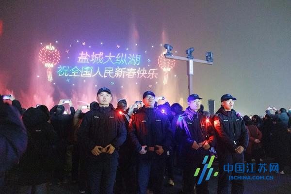 入夜时分,东晋水城千架无人机开始了令人目不暇接的精彩表演。夜幕下,有一群背对风景的人,他们或穿梭于熙熙攘攘的游客中巡逻防控、或驻足于游客集散点站岗守护、或热情为游客指引方向,解决游客所急所需。盐城公安用默默无闻的付出,为游客营造了安全、祥和的治安旅游环境。