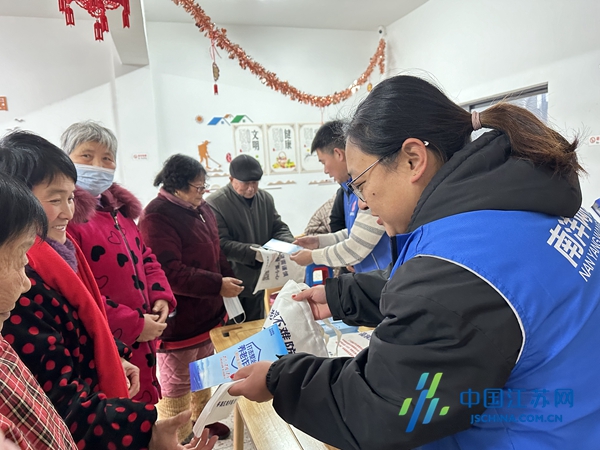 中国江苏网2月24日盐城讯 2月23日,一场大雪为龙年新春增添了别样的风景,盐城市亭湖区南洋镇网格员用自己的方式温暖着网格里的每一个群众。当天,南洋镇新时代文明实践所、南洋镇社会治理局在盐东居委会互助养老睦邻点开展了防范养老诈骗宣传活动。