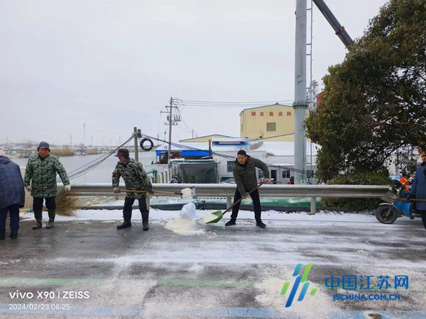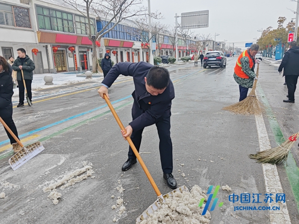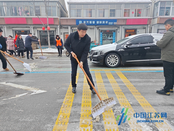 中国江苏网2月24日盐城讯 党员先锋暖人心,急雪更映党旗红。面对风雪来袭的严峻形势,为保畅通、保安全、保民生,2月23日一大早,盐城市射阳县黄沙港镇把冬训课堂前移到铲雪除冰一线,该镇党员干部以“雪”为令、迎“雪”而战,分工明确,互相配合,手拿铁锹、扫帚、雪铲等工具,在热火朝天的除雪“实战”中检验冬训成效。