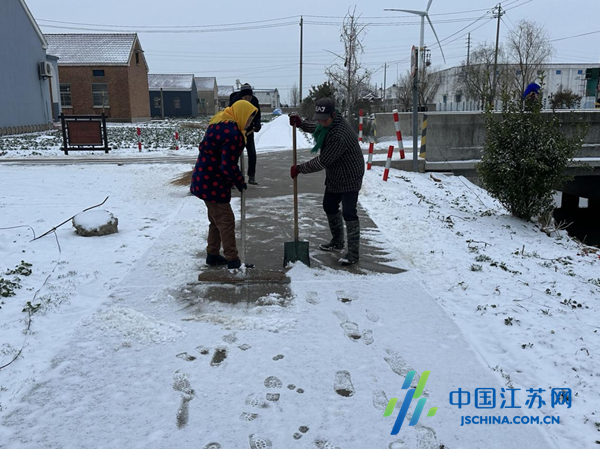 中国江苏网2月27日盐城讯 为了有效应对雨雪天气带来的积雪结冰安全隐患,确保居民群众安全出行,连日来,盐城市射阳县洋马镇黄海社区积极组织辖区党员志愿者开展扫雪除冰活动,用实际行动开启党员冬训“实践课”。