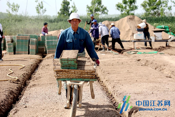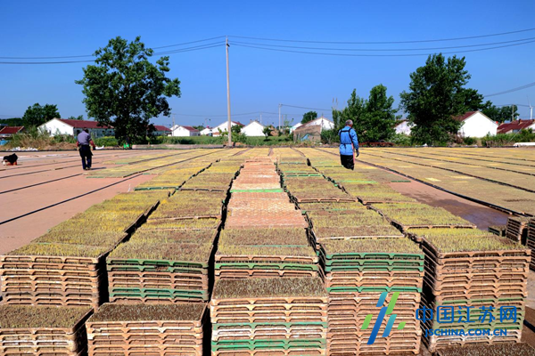中国江苏网5月13日盐城讯 俗话说:“秧好一半禾,苗好七分收。”初夏时节,正值育秧备耕的关键时期。江苏农垦黄海农场全力推广育秧流水线播种、恒温催芽、微喷旱育秧苗等精细化管理模式,紧锣密鼓、有条不紊地开展水稻育秧工作。各生产区、大队积极开展集中育秧,农业中心全程技术指导,保障各个茬口高效衔接,实现科技赋能水稻高产提质。一个个忙碌的身影在田间地头随处可见,奏响黄海“‘三夏’进行曲”,为全年粮食丰产丰收打下坚实基础。