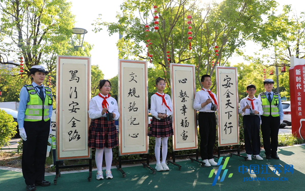 5月28日,盐城市公安局交警支队邀请建军路小学的同学们走进建军路交通安全主题公园欢度“六一”。同学们挥毫泼墨书写安全提示语、有模有样学起交通指挥手势、佩戴“交通安全小小宣传员”胸卡监督家人共同遵守交通法规。