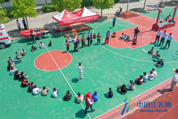 5月29日,东台市公安局五烈派出所联合东台市红十字救援队工作人员走进校园,开展防溺水宣传活动。“会飞的救生圈”闪现操场上空,一架警用无人机精准投放救生圈,引得学生们发出阵阵惊叹,让大家在掌握防溺水知识的同时也激发了他们对科技创新的兴趣探索。