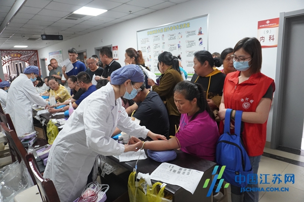 中国江苏网6月13日盐城讯 用热血凝聚爱心,用行动传递温暖。近日,东台市许河镇在镇卫生院组织开展义务献血志愿服务活动,吸引了来自全镇各机关部门、企事业单位干部群众踊跃报名参加。