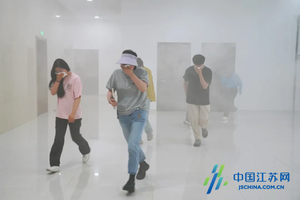 理论培训结束后,随着警报声的响起,全体参演人员手拿湿纸巾捂住口鼻、低头弯腰,按照预定路线有条不紊从安全出口紧急向外疏散。整个演练过程井然有序,达到了预期效果。